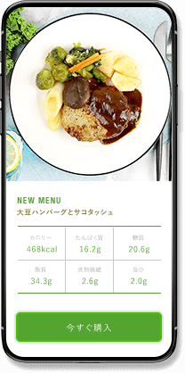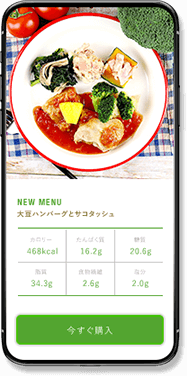 バイタル改善の治験結果を元に設けた糖質30g ・塩分2.5g以下の栄養価基で、全メニューを自社の工場で調理しています。